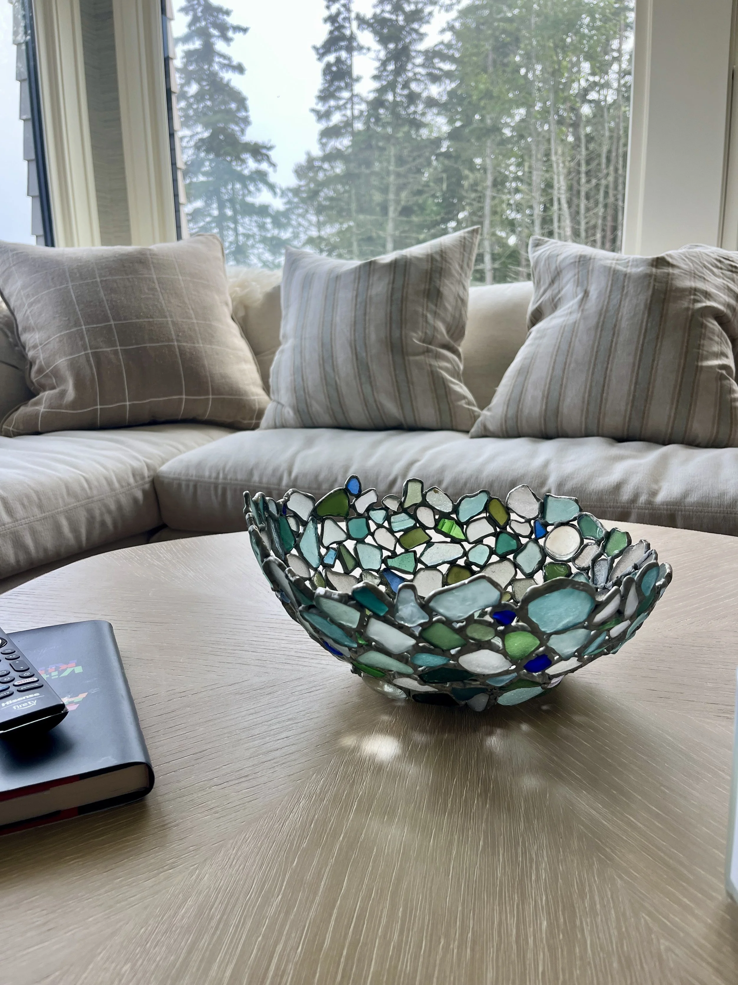 Every custom sea glass artwork starts with and conversation and a color palette. I can even add your personal sea glass into the finished piece.